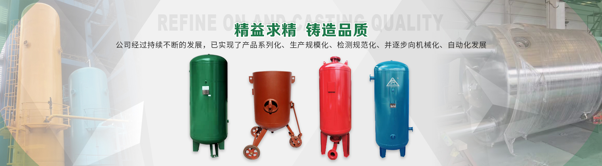 本企業(yè)產(chǎn)品有眾多產(chǎn)品分類,儲氣罐、磨料桶、碳鋼儲氣罐、不銹鋼儲氣罐、中高壓儲氣罐、臥式儲氣罐、緩沖罐、隔膜罐、噴砂罐、分氣缸、以及其他的定做非標產(chǎn)品等,產(chǎn)品廣泛應(yīng)用于化工、制藥、橡膠、石油、食品、機械等行業(yè)。